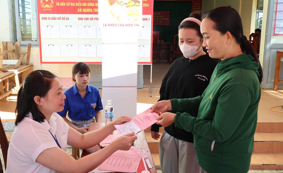 Hòa chung không khí phấn khởi của Ngày hội toàn dân đi bầu cử trên cả nước, cử tri xã Nghĩa Trung đã nô nức tham gia bầu cử đại biểu Quốc hội và Hội đồng nhân dân các cấp nhiệm kỳ mới (2026 – 2031).