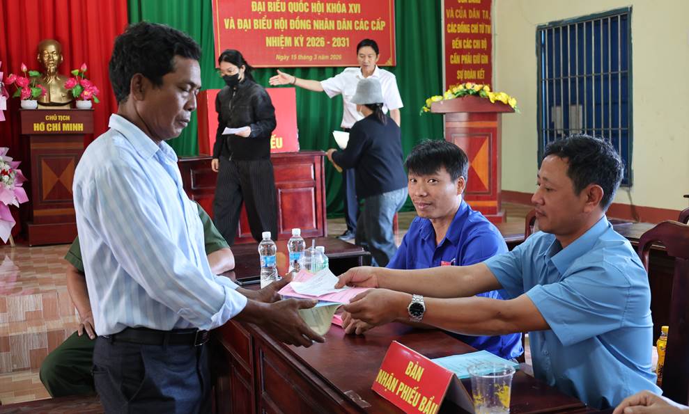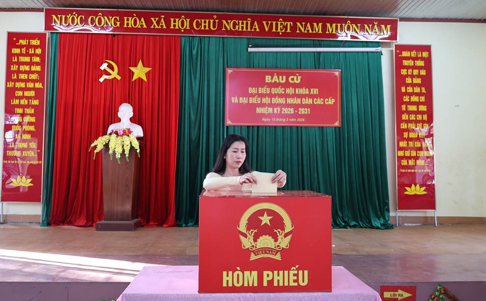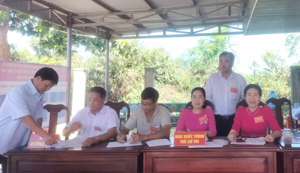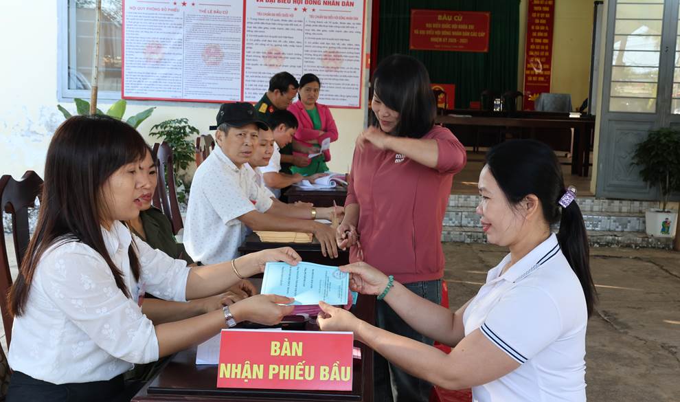 Công tác tổ chức bầu cử được chuẩn bị chu đáo, các khu vực bỏ phiếu được trang trí trang nghiêm, đúng quy định; lực lượng phục vụ bầu cử hướng dẫn cử tri thực hiện các bước bỏ phiếu thuận lợi, đúng trình tự.