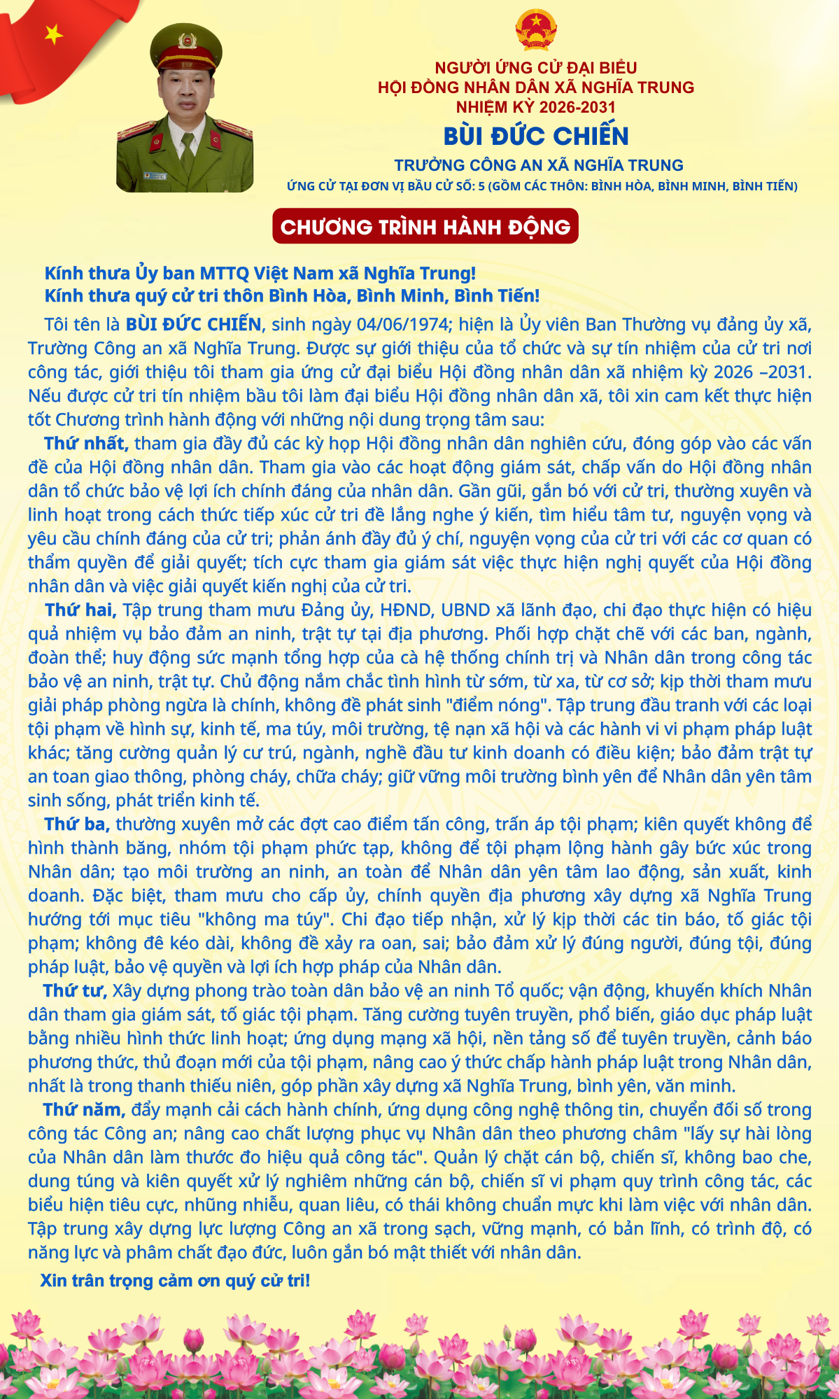 TÓM TẮT TIỂU SỬ NGƯỜI ỨNG CỬ ĐẠI BIỂU HĐND XÃ NGHĨA TRUNG NHIỆM KỲ 2026 - 2031 BÙI ĐỨC CHIẾN