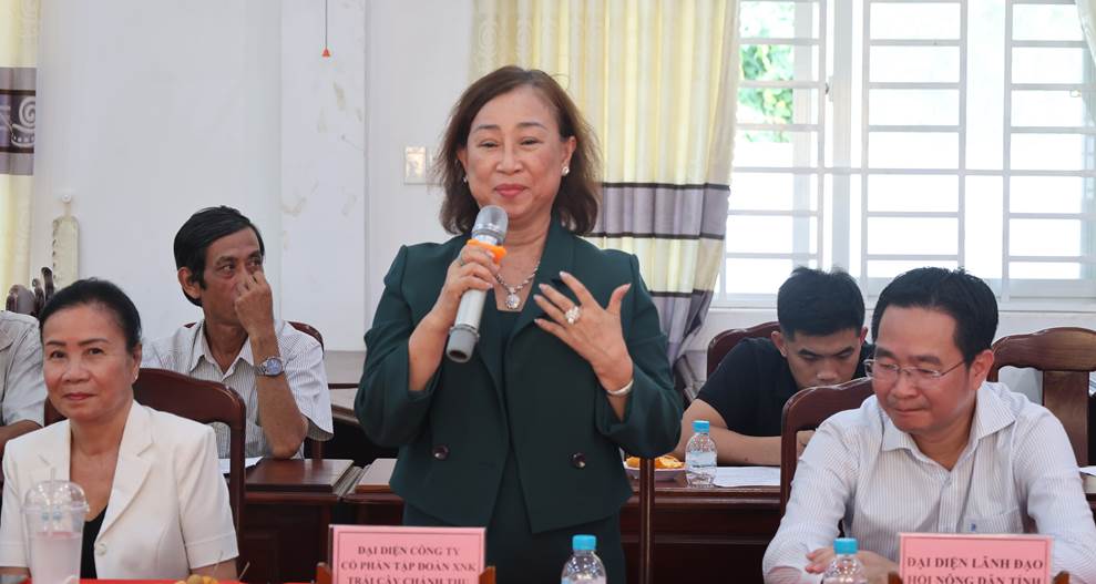Bà Nguyễn Thị Hồng Thu – Tổng giám đốc Công ty TNHHXNK Trái cây Chánh Thu phát biểu tại buổi làm việc