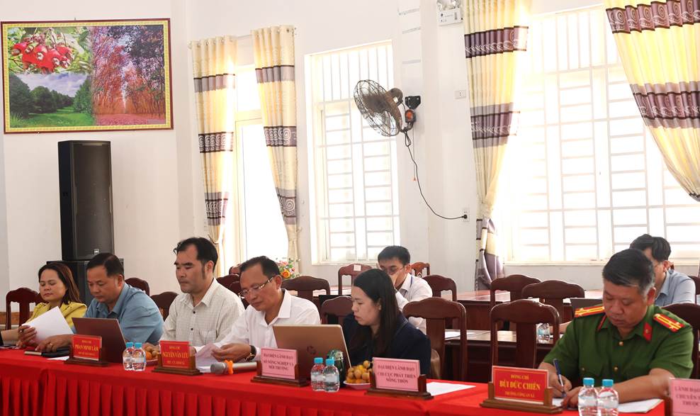 Dự buổi làm việc có đại diện lãnh đạo sở Nông nghiệp và Môi trường; đại diện lãnh đạo Hội nông dân tỉnh Đồng Nai; về phía địa phương có ông Nguyễn Văn Lưu - Chủ tịch UBND xã, ông Phan Minh Lâm – Phó Chủ tịch UBND xã cùng lãnh đạo các phòng chuyên môn xã; cùng dự buổi làm việc có đại diện các doanh nghiệp, hợp tác xã kinh doanh, sản xuất sầu riêng trên địa bàn xã Nghĩa Trung. Về phía Công ty TNHHXNK Trái cây Chánh Thu có bà Nguyễn Thị Hồng Thu – Tổng giám đốc Công ty.