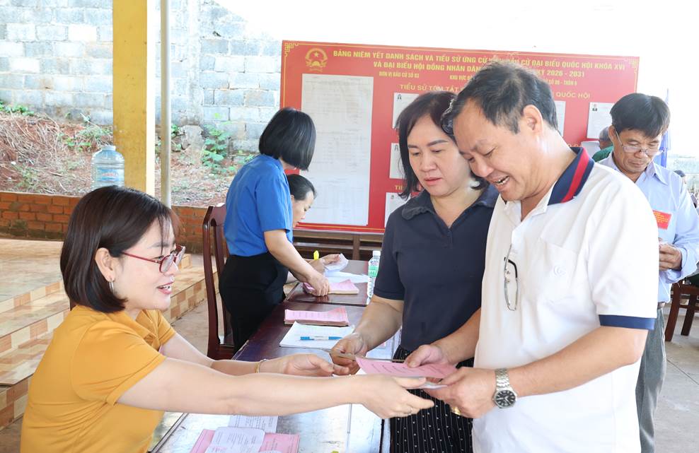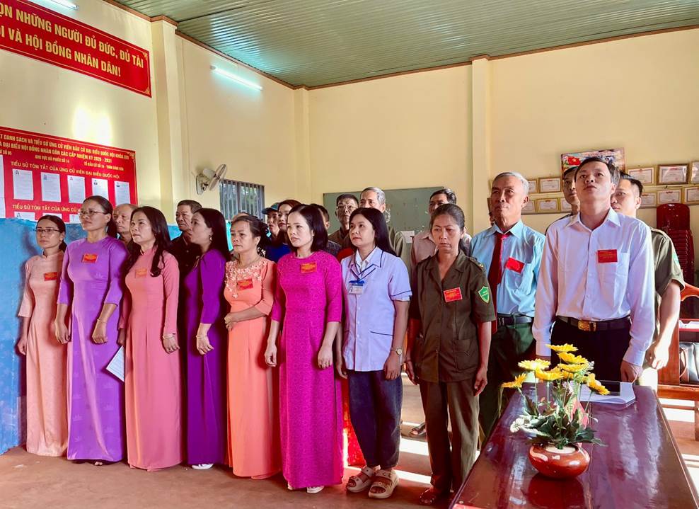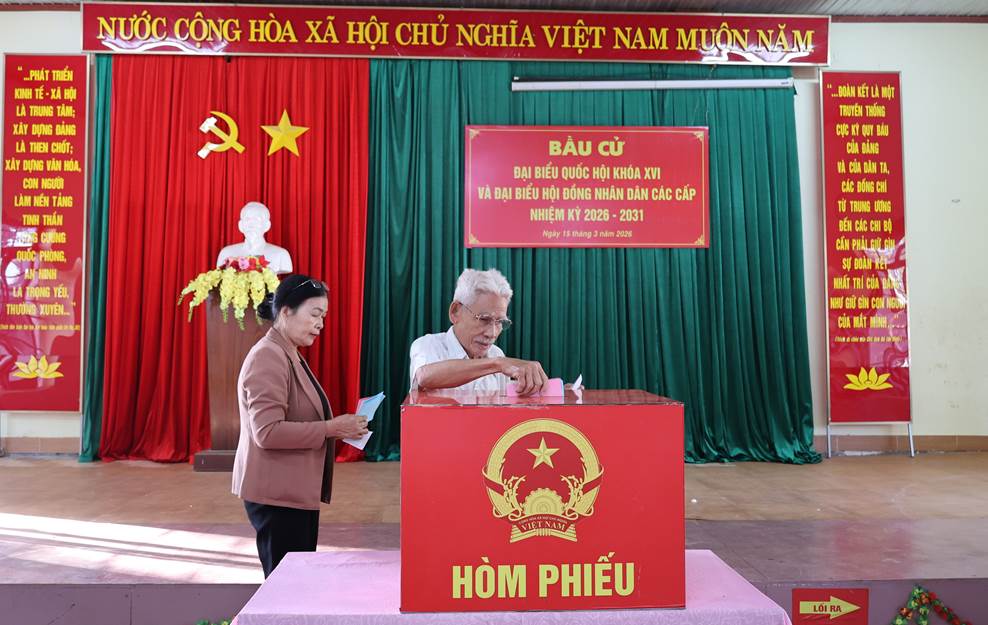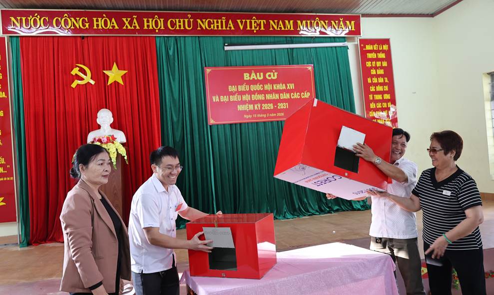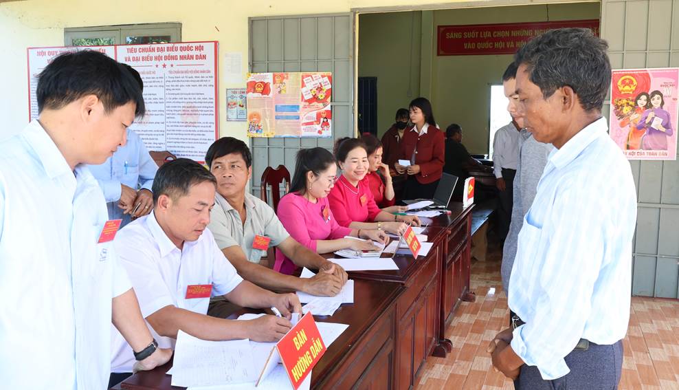 Công tác tổ chức bầu cử được chuẩn bị chu đáo, các khu vực bỏ phiếu được trang trí trang nghiêm, đúng quy định; lực lượng phục vụ bầu cử hướng dẫn cử tri thực hiện các bước bỏ phiếu thuận lợi, đúng trình tự.