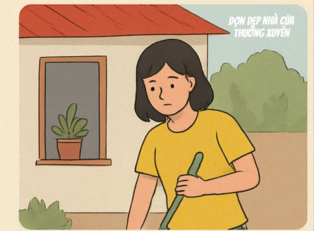 Thường xuyên dọn dẹp nhà cửa, phát quang bụi rậm, không để ao tù, nước đọng – là nơi muỗi sinh sản.