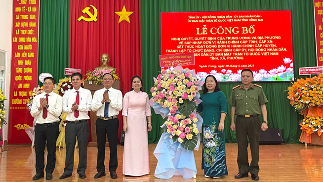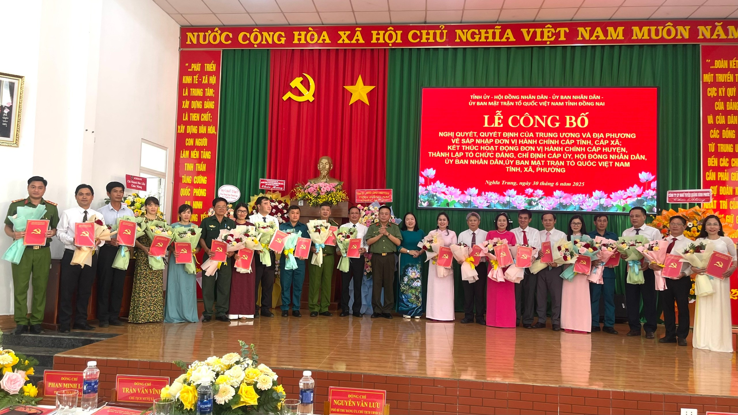 Chiều 30-6, tại trụ sở xã Nghĩa Trung, giám đốc Sở Tài chính Nguyễn Thụy Phương Thảo thừa ủy quyền của Tỉnh ủy cùng Phó giám đốc Công an tỉnh Nguyễn Phương Đằng dự Lễ công bố Nghị quyết của Trung ương và địa phương về sáp nhập đơn vị hành chính cấp tỉnh, xã; kết thúc hoạt động đơn vị hành chính cấp huyện, thành lập tổ chức Đảng, chỉ định cấp ủy, HĐND, UBND, UB MTTQ VN tỉnh, xã, phường.